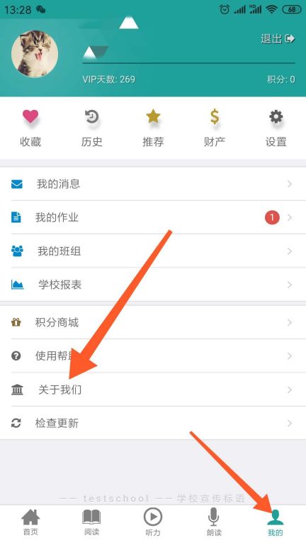 2019-06-26 • 4881这些内容会出现在APP我的页面→【关于我们】。或者分享APP的内容(文章、朗读作品等等)到微信后打开,返回首页后,会在首页展示。起到一个介绍学校详情、课程信息,提供联系方式预约报名入口等作用。