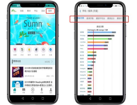 报表类型有统计报表、朗读报表和阅读报表。